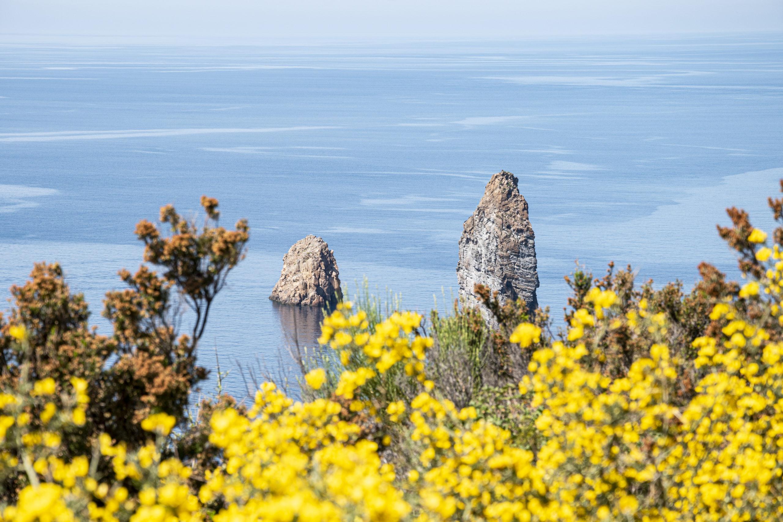 Le escursioni a Lipari conducono alla scoperta di sentieri immersi nella macchia mediterranea, come quello verso Punta Crapazza, da cui si gode di una vista straordinaria sul mare e sull’Isola di Vulcano.