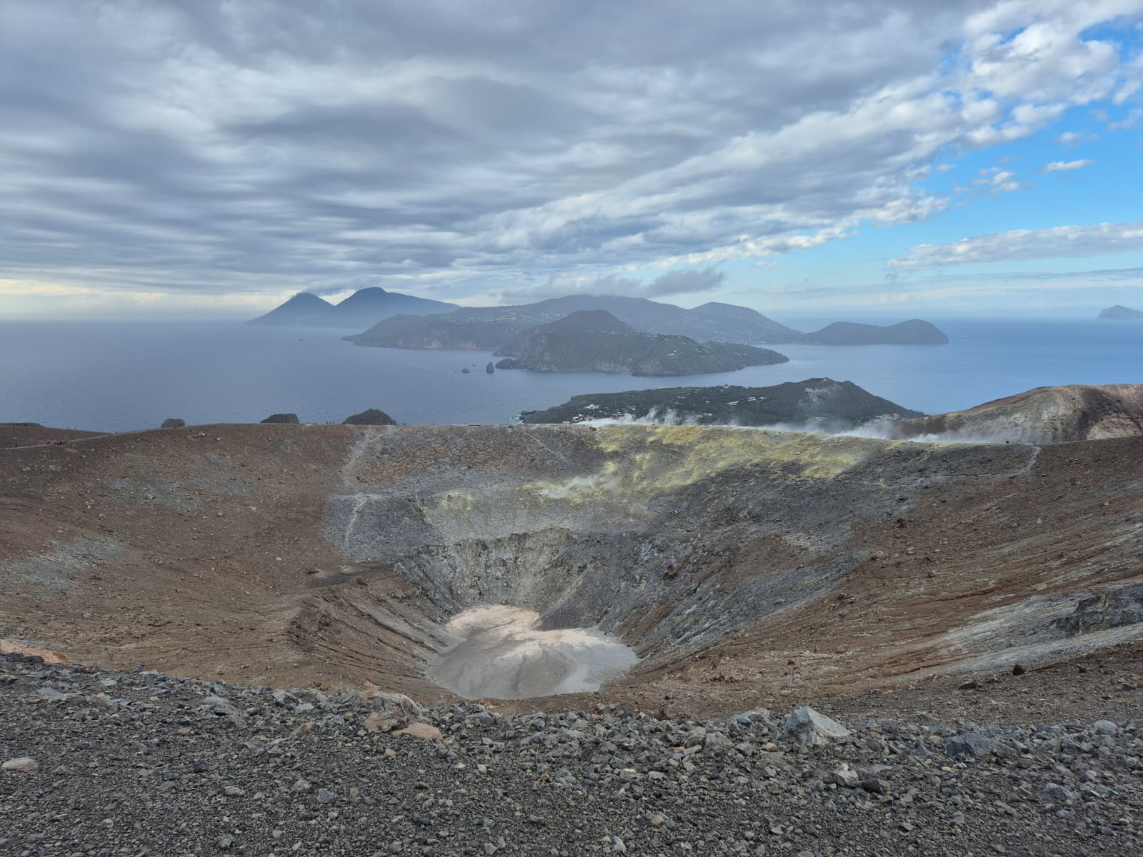 Nel pomeriggio, ci recheremo sull’Isola di Vulcano per un’esperienza intensa e suggestiva: l’ascesa al cratere di Vulcano, tra fumarole attive (che osserveremo a distanza di sicurezza), paesaggi lunari e panorami spettacolari che abbracciano l’intero arcipelago eoliano, con il mare che si tinge dei colori del tramonto.