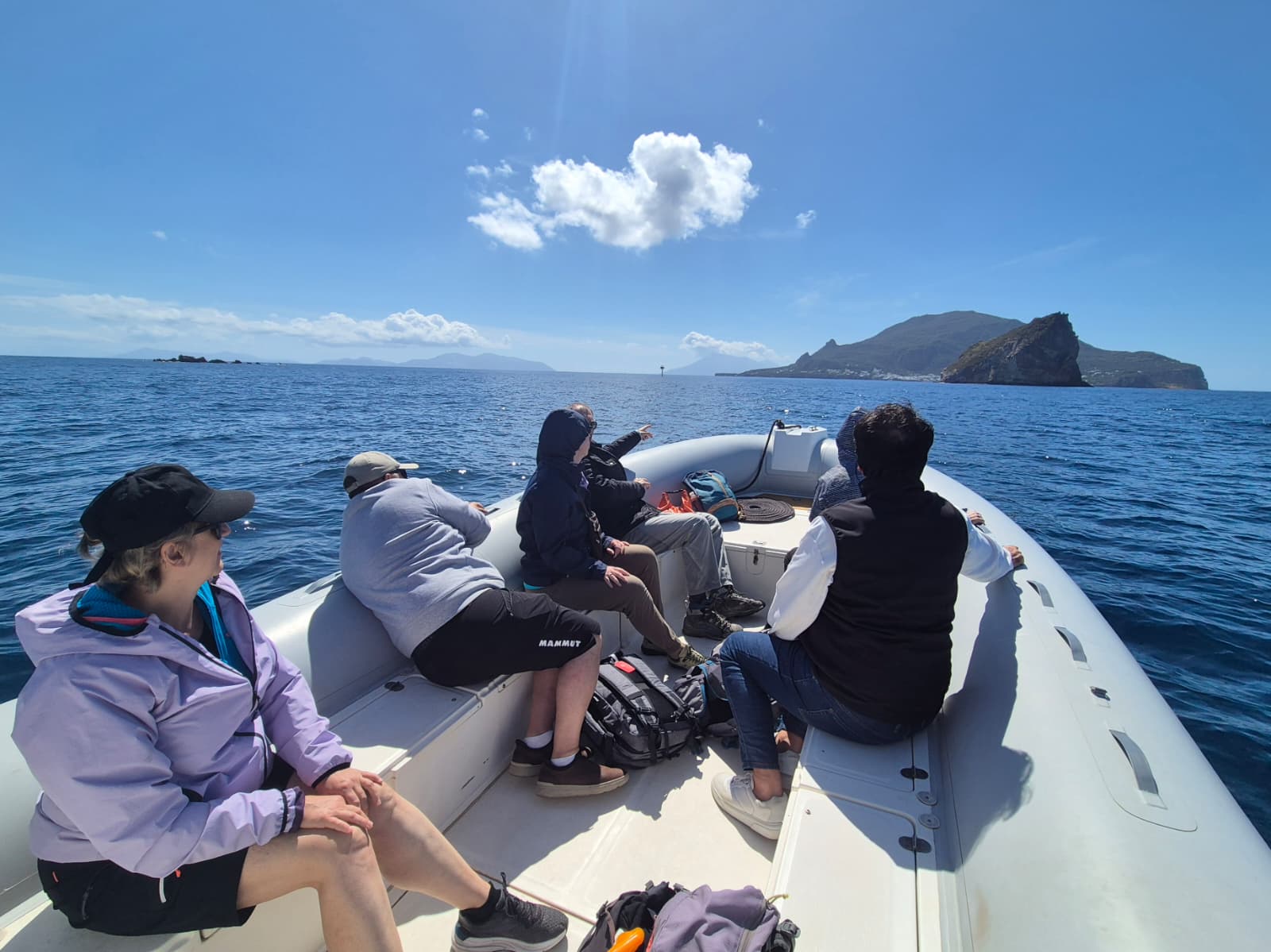 Tra i momenti più esclusivi del tour c’è l’escursione in gommone privato, che permette di vivere le Isole Eolie da una prospettiva unica, direttamente dal mare. La navigazione conduce lungo la costa di Stromboli, con soste nei pressi di Lisca Bianca, Lisca Nera, Spinazzola e Dattilo, affascinanti faraglioni vulcanici che emergono dalle acque turchesi del Tirreno.